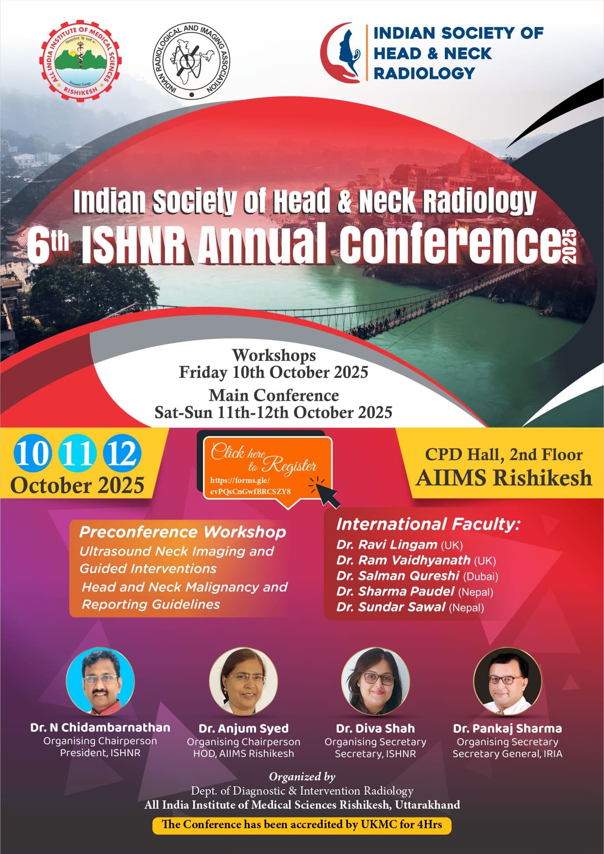 The ISHNR is a professional, non-political, non-profit, academic society dedicated to teaching and practice of Head and Neck Radiology. The society was founded by a small group of Radiologists interested in Head and Neck Radiology. It was incorporated under the laws and within the jurisdiction of the District Registrar of Societies, Chennai, Tamil Nadu in May 2019